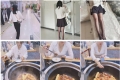 身高175长腿美女模特级身材开叉裙蕾丝透明内裤黄色包臀水晶高跟鞋美女裙摄影师约拍白色内内[MP4/683MB]